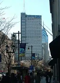 A finales de los años 1980 y principios de los 1990, se construyeron grandes rascacielos de cristal y granito en Center City. El rascacielos más grande fue Liberty Place. Compuesto pot el One Liberty Place de 288 m, el Two Liberty Place de 258 m y un hotel más pequeño, Liberty Place fue el primer edificio más alto que el Ayuntamiento de Filadelfia. Antes de que comenzara la construcción, el Ayuntamiento de Filadelfia había dado permiso para que los edificios fueran más altos que el Ayuntamiento para fomentar el desarrollo de rascacielos a lo largo de Market Street. Liberty Place fue diseñado por Helmut Jahn, quien combinó el estilo arquitectónico histórico con el estilo posmoderno. En el caso de Liberty Place, Jahn fue influenciado por el edificio Chrysler, de estilo art déco.[3] Según la maldición de Billy Penn, que apareció en algún momento después de que se construyera Liberty Place, ningún equipo deportivo de Filadelfia ganaría un campeonato mientras hubiera un edificio más alto que la estatua de William Penn en la parte superior del Ayuntamiento.[4]