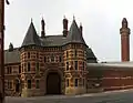El City Police Courts en ladrillo rojo con una impresionante torre de estilo gótico italiano fueron terminados en 1871 en Minshull Street por otro defensor del estilo gótico Thomas Worthington.[52] El último encargo de Worthington en la ciudad fue el flamígero flamenco gótico Nicholls Hospital, un orfanato que ahora forma parte del Mánchester College y tiene similitudes con los tribunales de Minshull Street.[53]