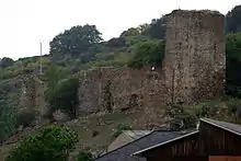 El castillo de Benal, Beñal o Benar[n. 1] aparece ya como «castro de Benal» en un documento de 1366. Poco después pasó a poder de la familia de los Quiñones. Posee una planta triangular, probablemente dictada por la topografía de la colina sobre la que se ubica, y de la que solo existe otro ejemplo en España.[8] Su torreón era un prisma trapezoidal con muros de mampostería y argamasa. A fines del siglo XIX se destruyó el castillo y sus materiales fueron empleados para pavimentar la carretera. Permanecen aún en pie la torre del homenaje y algunos muros.[9][10] En 2010 se organizó una mesa redonda para discutir la eventual cesión del castillo al ayuntamiento de Riello, primer paso para su restauración.[11]