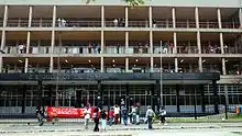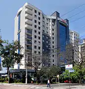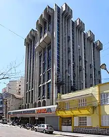 Otro nombre de relieve, que llega la ciudad en la misma época y con la misma formación fue Carlos Mendonça, creando un gran número de trabajos en menos de una década de actividad, algunos de gran porte.[32] En 1948 se creó el departamento estatal del Instituto de Arquitectos del Brasil, abriendo un nuevo fórum de debates especializados,[33] y 1949 se formó la primera reunión de arquitectos del Instituto de Bellas Artes de la UFRGS, introduciendo un flujo ahora regular de nuevos y buenos profesionales en el mercado.[20] Llegando a los años 50 el Modernismo ya estaba coronado por el oficialismo. La construcciones emblemáticas como el Palacio Farroupilha, diseñado por Gregório Zolko y Wolfgang Schoedon, para funcionar como sede de la Asamblea Legislativa,[34] y el Palacio de Justicia de Porto Alegre, proyecto de Fernando Corona y Carlos Fayet, ambos fruto de concursos públicos, fueron levantados según principios totalmente modernistas. Entre los proyectos de interés en esa fase se puede citar el Hipódromo de Cristal y el Edificio Explanada del uruguayo Román Fresnedo Siri;[30] el Hospital Fêmina, de Irineu Breitman; la sede antigua del Aeropuerto Salgado Hijo, de Nelson Souza; la Facultad de Farmacia de la UFRGS, de Flávio Figueira Soares y Lincoln Ganzo de Castro;[35] y el trazado inicial del Hospital de Clínicas, de Jorge Moreira, el cual, si no hubiese sido desvirtuado más tarde se constituiría, según Marcos da Silva, en uno de los referentes arquitectónicos de la capital gaucha.[36] En esa época el centro urbano ya estaba repleto de edificios de considerables alturas, destacando a Emil Bered y Salomão Kruchin como autores de varios edificios residenciales.[35][37]
