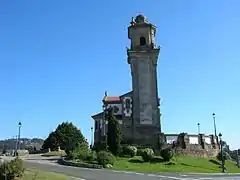 - Iglesia de San Pelayo de Navia. Se encuentra situada en la parroquia de Navia, el templo tiene sus orígenes a finales de la década de 1960, que es cuando se realiza el proyecto de construcción del edificio por parte de los arquitectos Antón Román Conde,[26] Ricardo Urgoiti y José Enrique Ruiz-Castillo. Su inauguración se produjo en el año 1969, en el templo destaca la utilización de estructuras laminares de hormigón armado en forma de paraboloide que forman su estructura, siendo uno de los primeros y escasos ejemplos de este tipo de arquitectura en la comunidad gallega.[11]