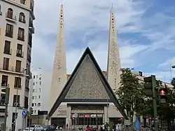 - Ampliación: la Catedral de Santiago de Compostela (España), en la que se añadió una monumental fachada barroca (conocida como el Obradoiro)[6] en el siglo XVIII a un templo románico iniciado en el siglo XI.