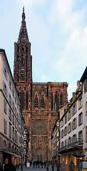 La era gótica, a la que se refirió por primera vez el historiógrafo italiano Giorgio Vasari,[22] comenzó en el noreste de Francia y se extendió lentamente por toda Europa. Quizás se expresó de manera más característica en el estilo rayonnant (radiante), que se originó en el siglo XIII, caracterizado por sus rebuscadas formas geométricas, con el fin de que los templos fueran lo más asombrosos y llamativos posible. Las iglesias góticas a menudo estaban muy decoradas, con características geométricas aplicadas a formas estructurales cada vez más complejas.[23] Cuando el período gótico se acercaba a su fin, su influencia se había extendido a distintos tipos de edificios, como salas de gremios, lonjas y edificios públicos y gubernamentales.
