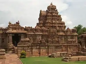 Por supuesto, los dos templo Brihadisvaras en Thanjavur y Gangaikonda Cholapuram así como los otros dos templos de Shiva, el Templo Airavatesvara de Darasuram y el de Sharabha, que también es popular como el templo Kampahareswarar, ambos en las afueras de Kumbakonam fueron los templos reales de los Cholas para conmemorar sus innumerables conquistas y subyugación de sus rivales de otras partes del sur de la India, meseta del Decán o Sri Lanka y las áreas de Narmada-Mahanadi-Gangtic.[22]