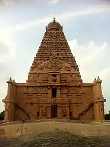 Los templos de estilo chola constan casi invariablemente de las tres partes siguientes, dispuestas de diferentes maneras, pero que difieren en sí mismas únicamente según el período en la que fueron ejecutadas:[16]