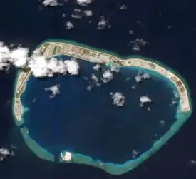El Arrecife Mischief está ocupado y es controlado por la República Popular de China, y es reclamado por la República de China (Taiwán) , Filipinas y Vietnam.