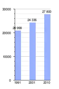 Gráfica de evolución demográfica de Arrecifes entre 1991 y 2010 |