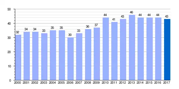 Gráfica de evolución demográfica de Arrieta[1] entre 2000 y 2017 |