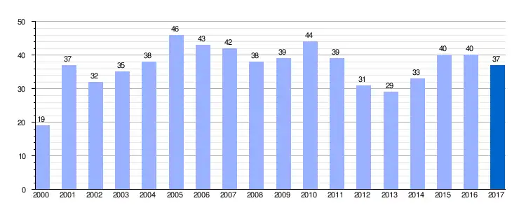 Gráfica de evolución demográfica de Arrieta entre 2000 y 2017 |