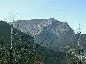 Su cara norte se alza desafiante sobre la población de Mañaria cerrado el valle por su lado derecho y uniéndose al Saibigain, y mediante éste a Urkiola, por el collado de Akerrale y por el de Iturriotz. Mucho menos abrupta se muestra en su vertiente sur, que baja hacia el valle de Arratia y guarda parajes como la cueva de Baltzola y el arco de piedra conocido como Gentil Zubi.