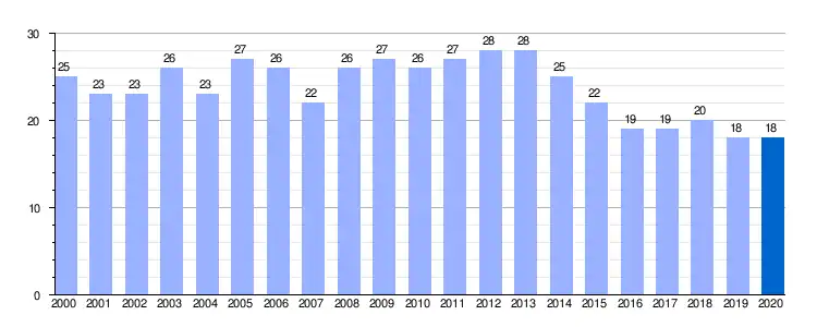 Gráfica de evolución demográfica de Arroyo de Valdivielso entre 2000 y 2020 |