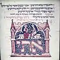 - Sumo Sacerdote de Israel con los implementos del Templo de Jerusalén, entre los que destaca la menorá. Pentateuco de Ratisbona, Bavaria, 1300.[42]