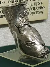 ![]() | ![]() | Los ritones de plata de la época de los aqueménidas combinan elementos orientales de la antigua Grecia y otros del arte de Urartu. Este aspecto ha permitido a los científicos hablar de la influencia del arte de Urartu en el arte aqueménida.[21] |