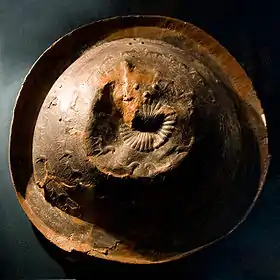 Las copas y platos se decoraban más a menudo con escenas de batallas, imágenes de jinetes y carros.[6]