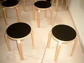 El taburete modelo nº 60, diseñado cerca de 1932-1933, demostraba el interés de Alvar Aalto en las formas básicas, funcionales y utilitarias. Está construido de abedul doblado laminado.