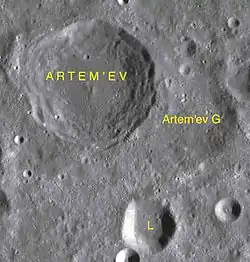 Artem'ev es un cráter de impacto lunar que se encuentra en la cara oculta de la Luna. El cráter Tsander se encuentra al suroeste de Artem'ev. Hacia el sureste se encuentra el enorme cráter Hertzprung.