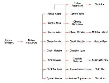 Los estilos sucesores de Shuri-te incluyen al Shotokan, Shitō-ryū, Shōrin-ryū, Shudokan, Shōrinji-ryū, Gensei-ryu and Motobu-ryū.[8]