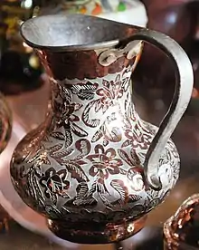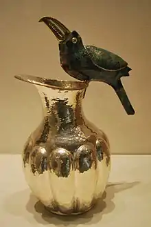 Jarrón de plata con asa de pájaro en el Museo de Arte Popular, Ciudad de México