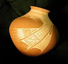 Las artesanías mexicanas cuentan con un gran reconocimiento y valoración, por ser productos que manifiestan la diversidad cultural de una sociedad, lo que ha permitido al sector convertirse en un atractivo mercado con potencial de crecimiento.[31] Varían de gran manera en los materiales usados, técnicas, utilización y estilos.[2] La artesanía más presente en México es la cerámica/alfarería. La cerámica fue considerada como una de las formas más altas del arte durante el Imperio Azteca, se decía que el conocimiento para hacer alfarería había venido del dios Quetzalcóatl. La alfarería prehispánica era hecha enrollando la arcilla en un círculo y luego hacia los lados, después se raspaba y moldeaba el trabajo hasta que las espirales ya no se pudieran detectar. Los españoles introdujeron la rueda del alfarero y nuevas técnica de acristalamiento.[32] La cerámica mayólica vidriada fue introducida por los españoles. Puebla, en particular, es reconocido por su variedad mayólica, la cual es llamada Talavera. Una de las características de esta ciudad es que muchas cocinas y edificios están decorados con azulejos de Talavera con detalles intrincados.[33] Los azulejos son un subconjunto de cerámica y eran usados extensamente en el México colonial. Estos azulejos primero eran calentados a bajas temperaturas, para después ser pintadas con diseños intrincados y finalmente calentados a altas temperaturas para fijar el barniz. Estos son hechos actualmente, pero la mayoría de los azulejos decorativos en México son hechos en fábricas.[34] La cerámica sin esmaltar todavía se hace, pero generalmente solo se hace con propósitos decorativos, copiando el diseño de las culturas prehispánicas.[33]