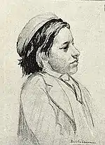 Pierre Puvis de Chavannes | Estudio preparatorio del retrato de Ary Renan para un cuadro de Puvis de Chavannes representando al artista en su taller, rodeado de sus alumnos Paul Baudoüin, Émile Dezaunay, Marie-Auguste Flameng, Cornélis Ary Renan, Adolf Karol Sandoz, Daras, Clémansin du Maine y Frédéric Montenard[14] | c. 1870 | Lápiz sobre papel beis, 21,5 x 21,4 cm | Museo del Louvre, París ![]() | |