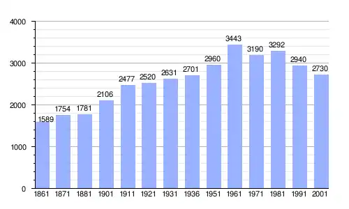 Gráfica de evolución demográfica de Arzana entre 1861 y 2001 |