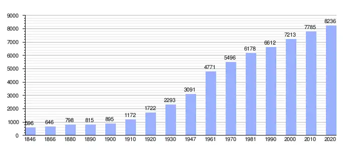 Todos los datos históricos relativos al actual municipio, el siguiente gráfico refleja su evolución demográfica, incluyendo municipios después de efectuada la fusión el 1 de enero de 1977.