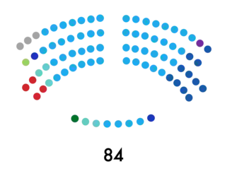 Gobierno: (64) 56 Nuevas Ideas[3] 5 GANA 2 PCN 1 PDC Oposición (20) 11 ARENA 4 FMLN 3 Independiente 1 Nuestro Tiempo 1 VAMOS | |