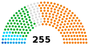 Sistema electoral | 169 por mayoría simple en distritos uninominales y el resto por mayoría simple en 36 distritos plurinominales de entre 2 a 6 miembros. | ||||