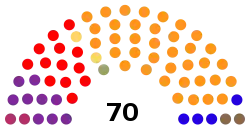 Los siguientes partidos políticos están representados en la asamblea (según el número de diputados):