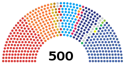 La Cámara de Representantes está compuesta por 500 miembros, 375 de los cuales son elegidos directamente por sufragio universal mediante un sistema de mayoría y el resto, 125, por un sistema proporcional entre las distintas listas electorales.