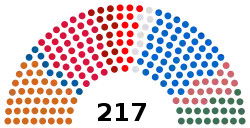 La Asamblea de Representantes del Pueblo está compuesta por 217 miembros elegidos directamente por sufragio universal por un período máximo de 5 años utilizando la representación proporcional.[3]