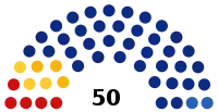 Sistema electoral | Mixto: 25 diputados con representación proporcional por listas y otros 25 con distritos de un solo miembro | ||||