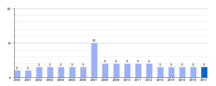 Gráfica de evolución demográfica de Ascarza entre 2000 y 2017 |