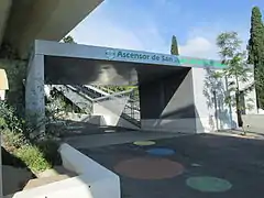 El ascensor, fabricado por ThyssenKrupp Elevadores, es un elevador inclinado con sistema de tracción eléctrica con contrapesos de acero galvanizado. La cabina, con una capacidad para 25 personas, tiene un acabado de acero inoxidable satinado y luna de cristal de seguridad; a su vez, dispone de un sistema de telefonía bidireccional, sistemas de emergencia, indicador de posición visual y acústica para personas de movilidad reducida y está dotada de climatización por aire acondicionado.[1][2]