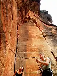 Un compañero asegura el ascenso del escalador líder.
