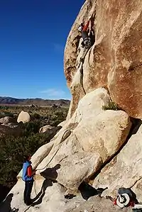 Líder y asegurador escalando en el Parque nacional de Árboles de Josué.