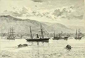 ![]() Obra de 1851 de William Bollaert que ilustra la Mina Huantajaya, Chile. | ||