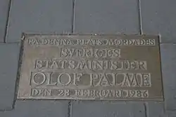 El asesinato de Olof Palme, primer ministro de Suecia, tuvo lugar el viernes 28 de febrero de 1986 en Estocolmo, Suecia a las 23:21 CET (22:21 UTC). Palme fue asesinado mientras volvía caminando del cine a su casa con su mujer Lisbet Beck Friis, por una de las calles principales del centro de Estocolmo, Sveavägen. En ese momento la pareja no llevaba guardaespaldas. Un hombre se acercó a ellos y disparó a quemarropa sobre la espalda del primer ministro, que murió a los pocos minutos.