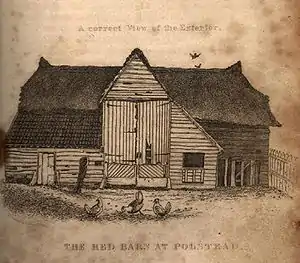 El asesinato del granero rojo fue un asesinato famoso cometido en la pequeña aldea de Polstead, en el condado de Suffolk en Inglaterra, en 1827. Una joven, María Marten, fue baleada y asesinada por su amante, William Corder. Ambos habían acordado encontrarse en el granero rojo, un punto de referencia local, antes de fugarse a Ipswich. No se supo más de María. Corder huyó de la escena del crimen y envió cartas a la familia de Marten afirmando que ella estaba saludable; sin embargo, su cadáver fue descubierto posteriormente, enterrado en el granero, después de que su madrastra dijo haber soñado sobre el crimen.