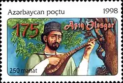 - Ashiq Qərib, es una epopeya azerí, que se hizo famosa gracias a Mikhail Lermontov. Se trata de otra historia importante sobre un ashik errante que había comenzado sus viajes con amor mundano y obtiene sabiduría viajando y aprendiendo para acabar logrando la santidad. La historia de Ashiq Qərib ha sido la característica principal de una película con el mismo nombre del director y productor Sergei Parajanov.[30] A principios de la década de 1980, Aşıq Kəmandar narró y cantó la historia en un programa de televisión de una hora de duración, cuya audiencia se distribuyó ampliamente en Azerbaiyán iraní y tuvo un impacto clave en la reactivación de la música ashug.
