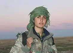 A finales de 2014[1] con 16 años de edad, se alista en las filas de la milicia popular de las Unidades Femeninas de Protección con objetivo de luchar contra el Estado Islámico. Siendo una de las muchas combatientes de mediana edad en la milicia kurda, esta se destaca antes los medios internacionales al ser bautizada «la Angelina Jolie kurda» por su parecido físico. Dichas comparaciones con la actriz estadounidense generaron repudio y rechazo de parte de sus compatriotas combatientes de las milicias y activistas de la causa kurda quienes calificaron las comparaciones como sexistas y una campaña de cosificación.