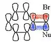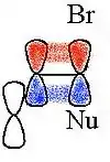 También el aumento en el índice de la reacción SN2 de bromuro de alilo con un nucleófilo, comparada con la reacción del bromuro de n-propilo debido al translape de los orbitales π en el estado de transición. En el sistema alílico, se translapan los orbitales del alqueno con los orbitales de un estado de transición SN2.