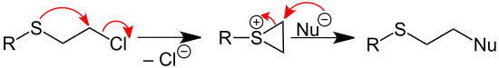 Un ejemplo clásico de NGP es la reacción de un azufre o mostaza de nitrógeno con un nucleófilo, el índice de reacción es mucho más alto para la mostaza de azufre con un nucleófilo que para un cloruro de alquilo primario sin un heteroátomo.