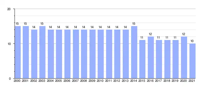 Gráfica de evolución demográfica de Aspozas entre 2000 y 2021 |