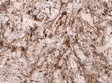 Histológicamente, son características de la lesión las células gigantes astrocíticas; sin embargo, la morfología de las células tumorales puede variar desde células poligonales con citoplasma vítreo y núcleos ganglioides hasta células fusiformes en una matriz fibrilar. Las células tumorales muestran una expresión variable de GFAP, S-100, sinaptofisina y neurofilamentos.
