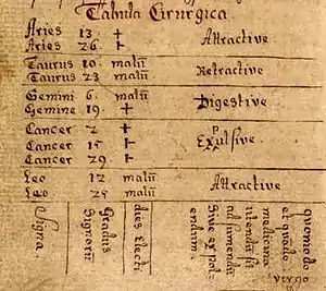 La astrología médica posibilita la asociación de cada signo del zodíaco con partes del cuerpo, y era mencionada ya por Manilio (siglo I) en su poema épico (8000 versos) Astronomica. Se creía que los signos del zodíaco presidían distintas partes del cuerpo, cubriéndolo desde la cabeza (Aries ) a los pies (Piscis) de la siguiente manera:[2]