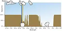 Algunos rayos gamma de muy alta energía se convierten en otro tipo de partículas al penetrar en la atmósfera, éstas emiten luz azul, violeta y ultravioleta por un proceso que se llama radiación Cherenkov. Los telescopios que ven estos destellos de luz se llaman telescopios de Cherenkov.[1]