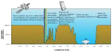 El Telescopio espacial Hubble es un telescopio espacial creado por la NASA, y fue lanzado a la órbita baja de la Tierra en 1990.[3] Todavía está en funcionamiento hoy en día. Los cuatro instrumentos principales del Telescopio Espacial Hubble observan en los espectros ultravioleta cercano, visible e infrarrojo cercano. Las imágenes del Hubble son algunas de las imágenes más detalladas jamás tomadas, lo que ha llevado a muchos avances en la astrofísica, como la determinación precisa de la tasa de expansión del universo.
