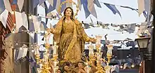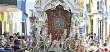 A las 21 horas se celebra la procesión con la talla de la Asunción[4] desde la parroquia de Nuestra Señora de la Asunción. Son miles los fieles y devotos que se desplazan de las localidades vecinas, y de los distintos puntos geográficos de Andalucía y resto de España. La Virgen en su paso procesional aparece apoyada sobre una nube que sale de un sepulcro de oro donde parece elevarse al cielo.