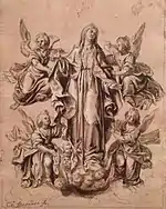 En la Colección Abelló se conserva el Álbum Alcubierre, obra de Miguel Espinosa Maldonado de Saavedra y Tello de Guzmán, II conde del Águila;[2] el folio número 39 de este álbum constituye muy posiblemente un dibujo preparatorio hecho por Juan de Mesa en relación a la ejecución del retablo,[3] siendo además el único boceto que se conoce del escultor.